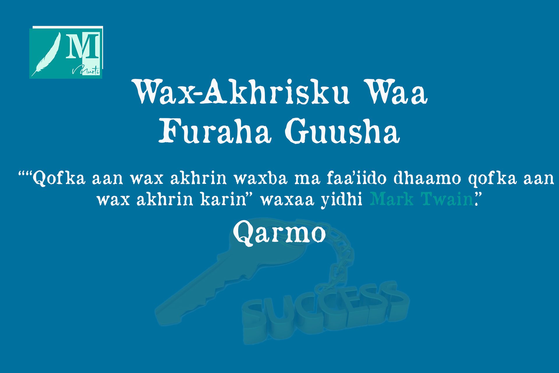 waxa aan ka dhex arki karnaa in furaha guushu yahay wax akhris. Wax akhrisku waxa uu qofka